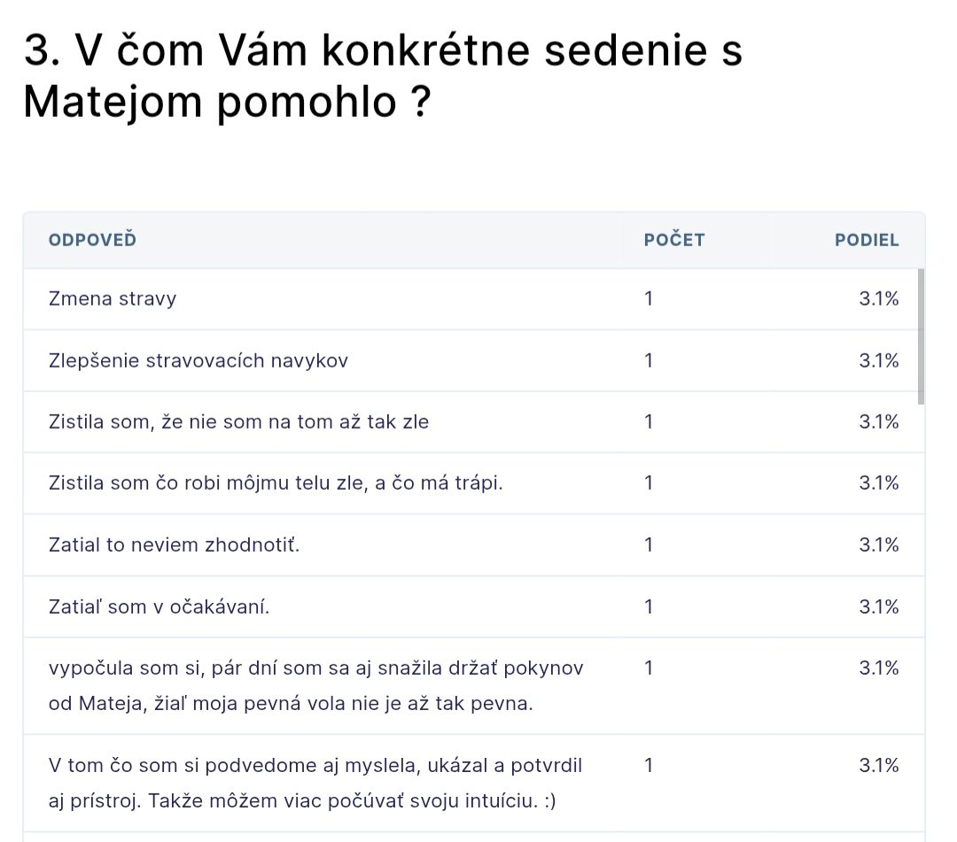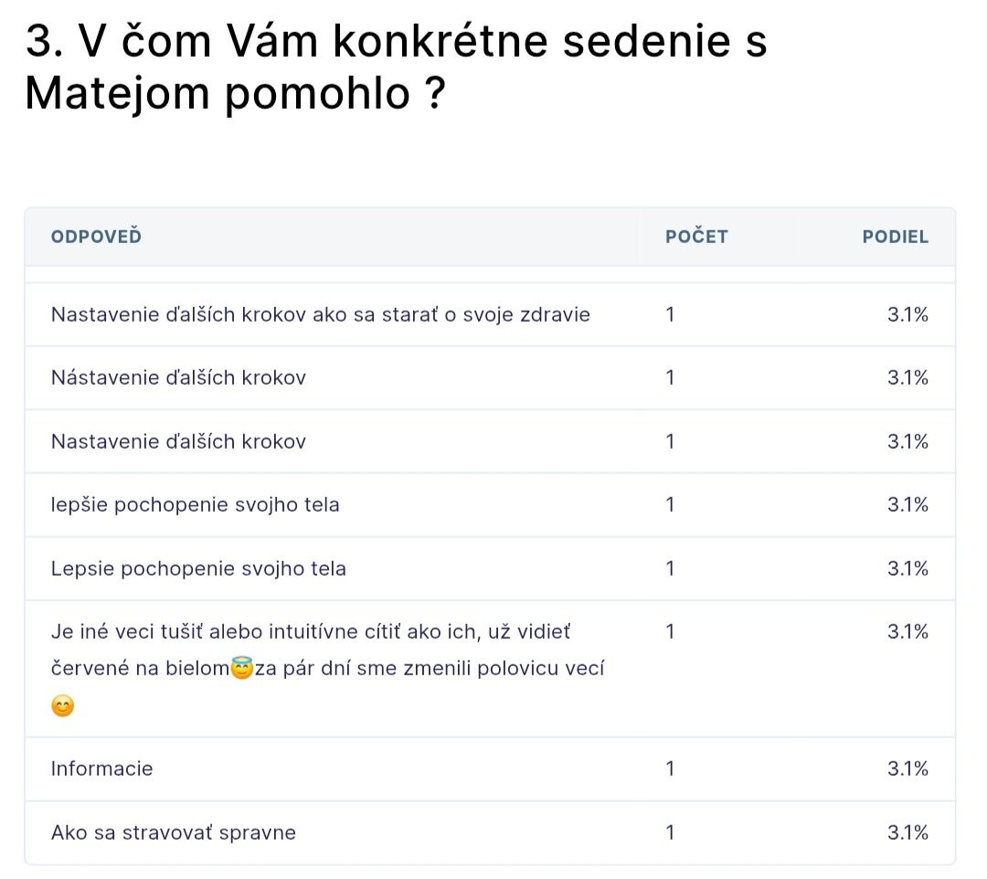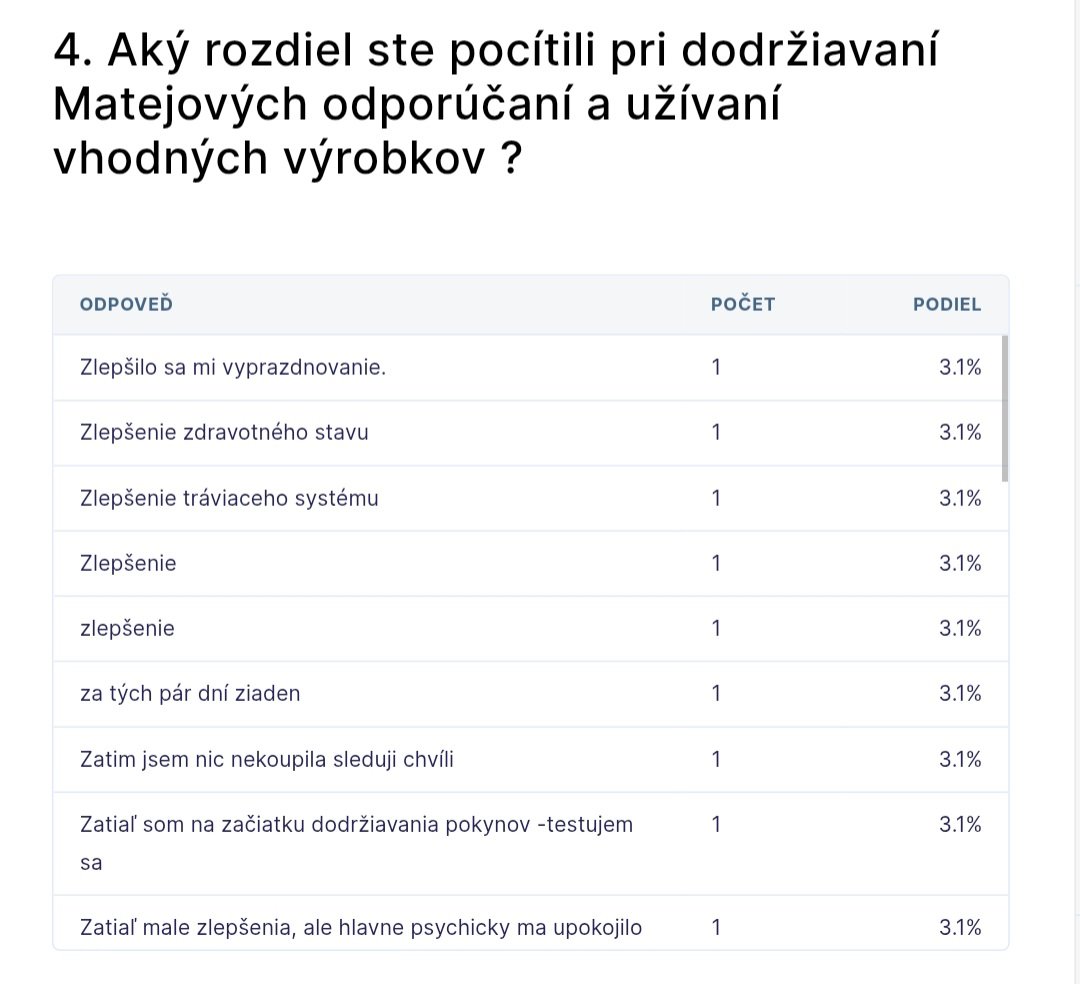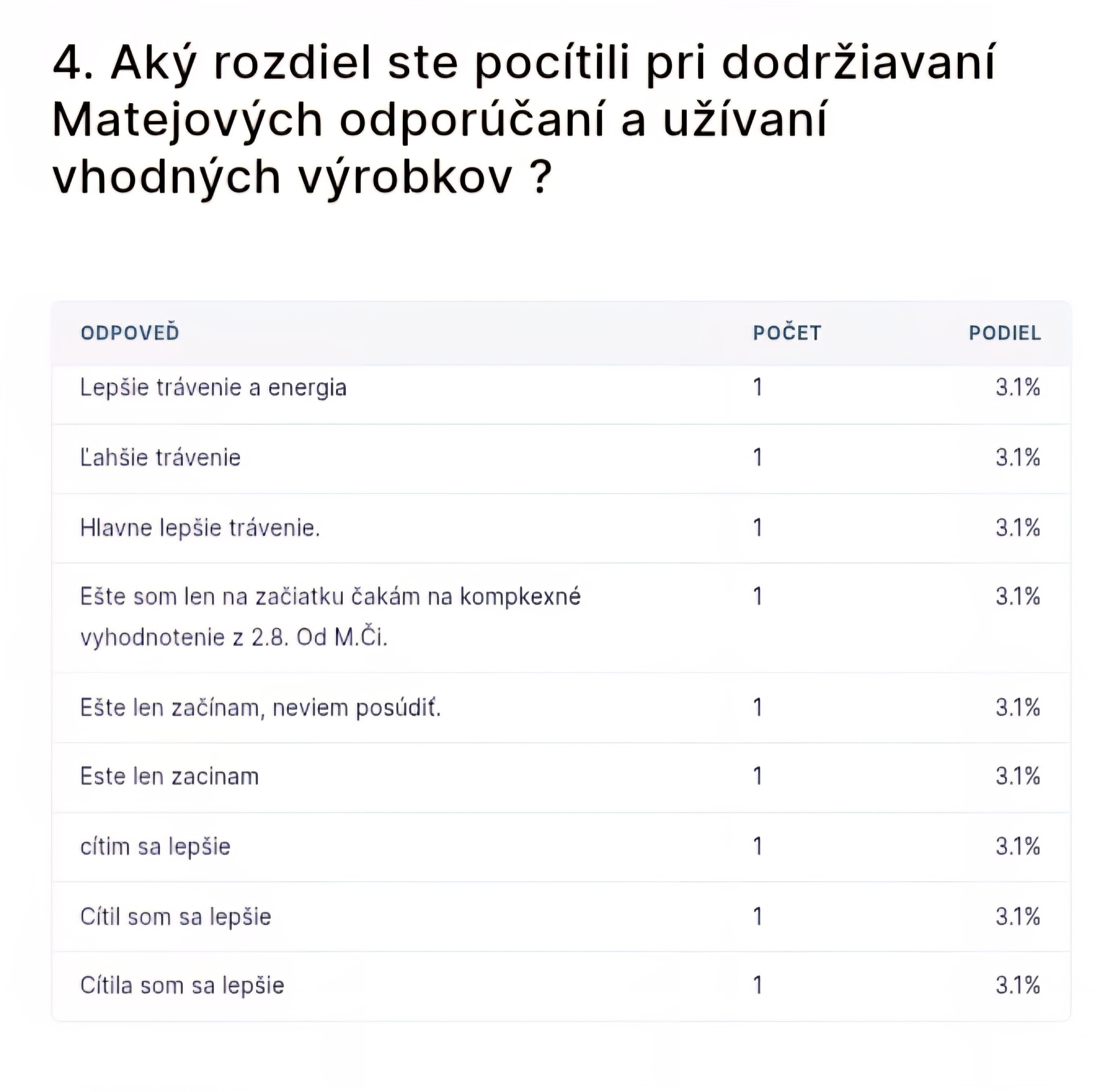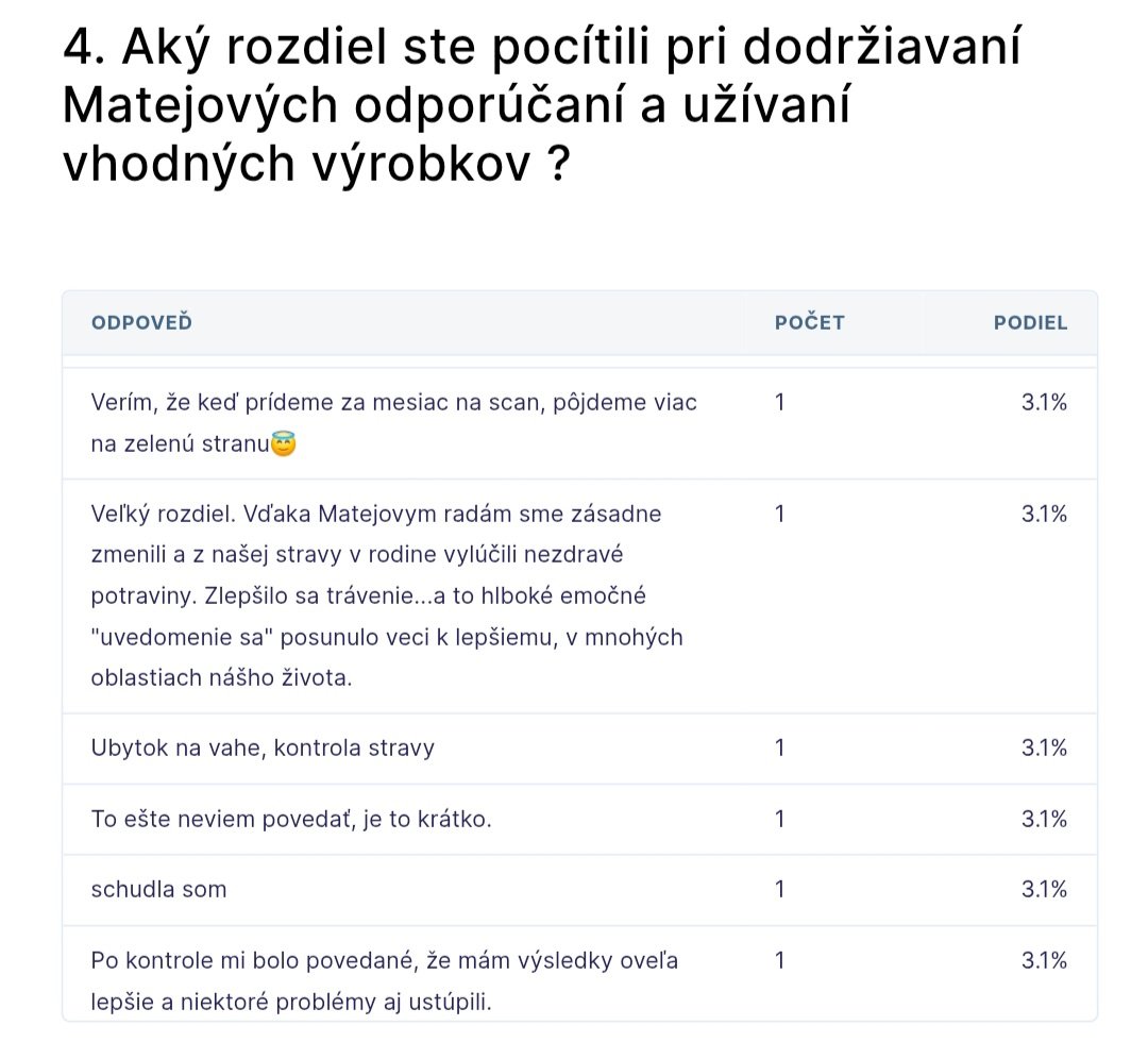 Za necelý mesiac sa Klientka sa subjektívne cítila lepšie a v opakovanom meraní sa ukázali priaznivejšie hodnoty podľa reportu Jednoducho sme sa zamerali na to, čo bolo potrebné. Zamerali sme sa na individuálne odporúčania a podpora životosprávy priniesla pozitívne zmeny podľa klientkiných slov.