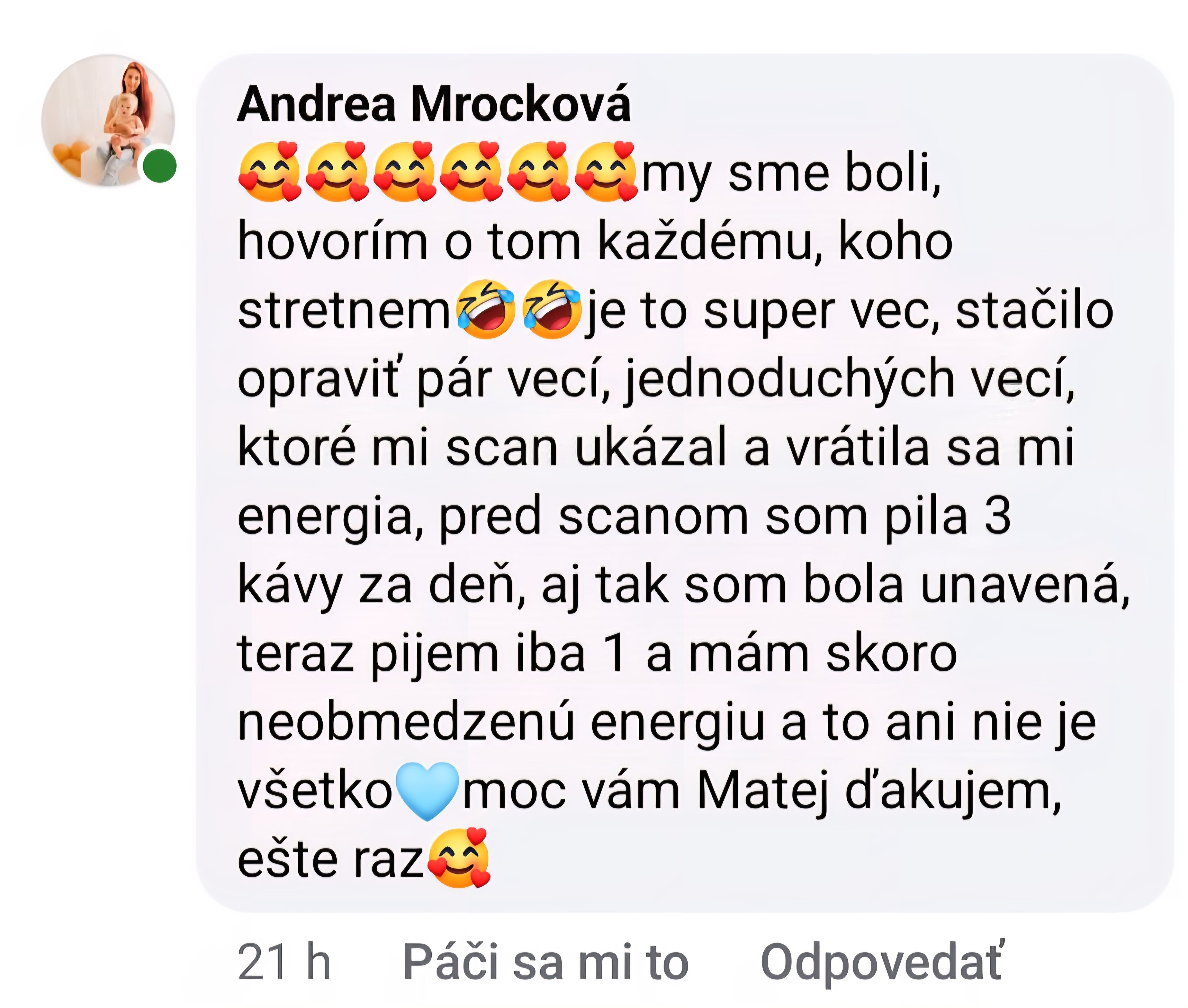 Prehlásenie: Informácie získané zo ZYTO skenovania neslúžia na diagnostiku, prevenciu ani liečbu ochorení. Diagnostiku vykonáva Matej Mravec a ZYTO scan slúži ako pomôcka k tomu. Nenahrádzajú lekársku starostlivosť. V prípade zdravotných problémov sa vždy obráťte na svojho lekára.